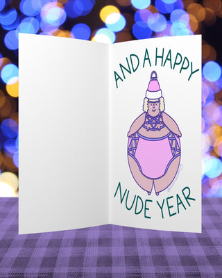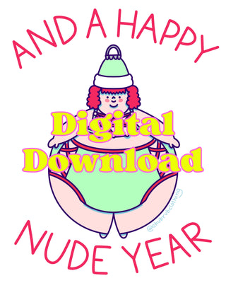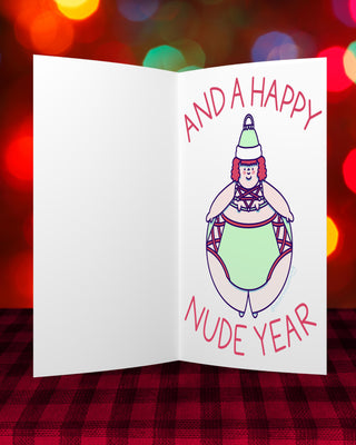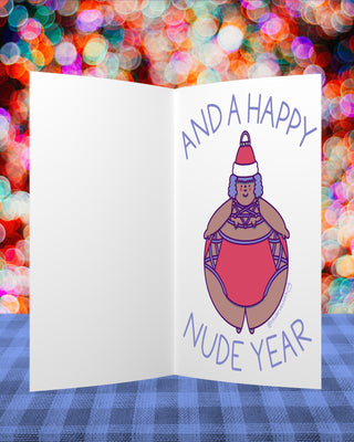 MERRY THICKMAS and A HAPPY NUDE YEAR (Merry) - Holiday Card - Fat Babe Illustration